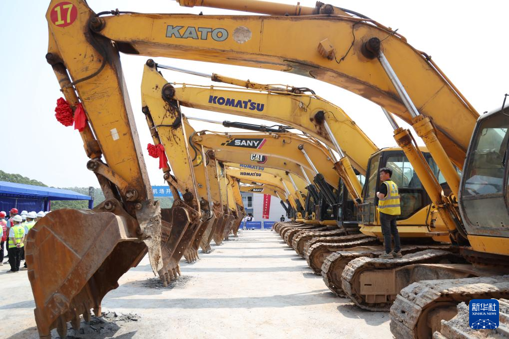 广州新机场于3月25日开工建设。广州新机场位于佛山市、肇庆市、江门市和佛山市高明区云浮的地理中心。项目总投资4180.8万元,其中机场项目3590.9万元。将修建两条平行的长距离跑道。该航站楼建筑面积约26万平方米,飞机座位94座及相应辅助设施,预计可满足每年3000万人次旅客、50万吨货邮、26万架次飞机起降的运行需要。为实现航空、铁路、公路多式联运的高效衔接,广州新机场将引入多个区域干线轨道交通系统,包括广州湛江高铁、深圳南高铁、珠海昭华高铁和兆顺南部城际铁路,同时将建设“五横四纵”高速公路网及周边地区高速公路网。新华社记者 卢寒星 供图