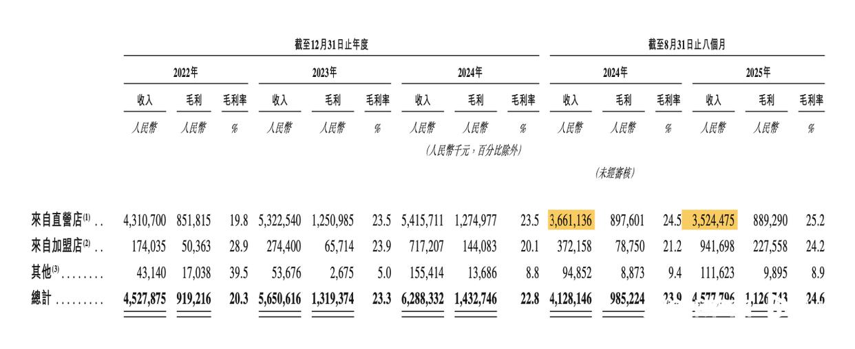 近日,快餐连锁老乡记再次更新港股上市招股书,并更新了去年前八个月的财务数据。 2025年前8个月,老乡鸡营收45.78亿元,同比增长10.90%,净利润3.72亿元,同比增长12.05%。调整后不含国际财务报告准则的净利润同比增长8.96%至人民币8.6亿元。与之前相比,宠物鸡的收入增速逐年放缓。 2022年至2024年,总营收分别为45.28亿元、56.51亿元、62.88亿元,同比增速分别为58.38%、24.80%、11.27%。同期净利润分别为2.52亿元、3.75亿元和4.09亿元,年际增长率分别为86.67%、48.81%和9.07%。最初,崂山鸡正准备在A股上市。招股说明书于2022年5月提交上海证券交易所主板并获受理。 2023年8月,老向吉撤回A股上市申请。 2025年1月3日,老向吉将目光转向港股,并在港交所正式提交招股说明书。招股说明书提交后,分别于2025年7月和2026年1月进行了更新。去年,两家内地餐饮企业在香港联交所上市。绿茶于2024年6月申请上市,2025年5月在香港联交所上市。相约小面于去年4月提交招股书,申请上市晚于老向吉,但将于2025年12月在港股上市。老向吉主要靠在自己的餐厅卖中式快餐赚钱。招牌菜有肥西古鸡汤、麻辣鸡杂、米饭豆角、蒸凤爪、红烧肉、酸菜等。菜品麦只需要12元到17元之间。除了门店经营,老乡鸡的产业链还包括养殖部门和食品加工部门。上游拥有三个家禽养殖场和两个中央厨房,配备自动化生产线,能够对烹饪原料进行预处理和加工。截至2025年8月31日,老香记拥有门店1658家,其中直营店925家,加盟店733家。 2025年1月至4月,与上期招股书相比,直营机构净减少3家。根据最新招股书,2025年5月至8月直营店数量增加14家。2022年至2024年直营店数量计划分别为1007家、973家和914家。同期,加盟店数量将分别达到118家、226家和565家。老香记门店数量增加主要是由于门店扩张专卖店和部分加盟店是由直营店改制而成。预计2024年和2025年上半年转为特许经营的门店数量分别为146家和32家。老享记在2020年开始实施特许经营转型策略,认为可以最大限度地发挥现有业务的优势,实现资本高效增长,收回前期投资。直营店和兄弟店对老香鸡的效益贡献差异很大。截至2025年8月末,老香记直营店收入贡献率分别为加盟店的55.79%和44.21%,2025年前8个月,直营店收入贡献率分别为76.98%和20.58%。但由于直营店总数增加11家,2025年上半年直营店销售额同比下降3.73%n年增至35.24亿元。尤其是在餐厅经营层面,老香鸡去年人均消费水平下降,翻台率略有下降,日均销售额有所上升。 2025年前8个月,老乡鸡直营店人均消费水平下降0.2元至27.5元,翻台率由每天4.8次增加到每天4.7次,单店日均销售额比上年增长5.3%。 3%至16,700元。专营店人均消费水平下降0.9元至28.4元,翻台率维持每日3.2次不变,单店日均销售额增长2.93%至1.24万元。此外,2025年前8个月,老乡鸡可比销售额继续保持3.8%的正增长,其中直营店占比3.5%,加盟店占比5%.2%。从区域分布来看,老乡鸡仍然严重依赖华东市场,尤其是安徽省市场。截至2025年8月31日,老香记在华东地区拥有门店1,434家(86.5%)。其中,安徽省有784家门店(47.3%)。 (南都湾财经报记者 詹丹青)
